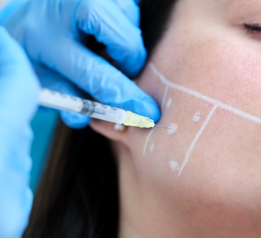 La toxina botulínica se inyecta a cada lado de la mandíbula, en los músculos maseteros, con una aguja muy fina. Como es un músculo bastante más grueso que los de la mímica facial, se utilizan dosis mayores que cuando queremos atenuar arrugas del tercio superior.